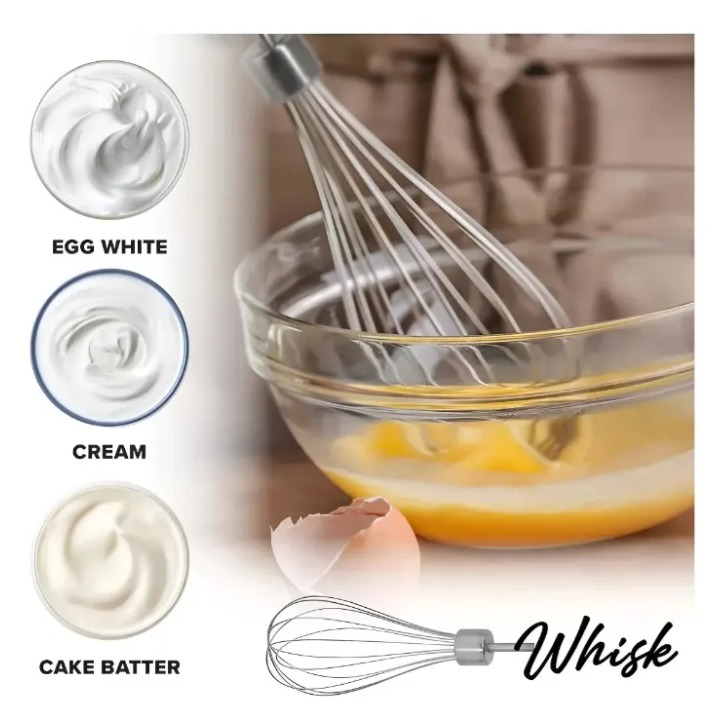 Transforma tu cocina con el Juego de Batidora de Mano 5 en 1, una herramienta versátil diseñada para facilitar tus preparaciones diarias. Con una potencia de 300 W, este batidor eléctrico es ideal para batir, mezclar, picar, triturar y emulsionar, permitiéndote crear desde sopas y cremas hasta deliciosos batidos y salsas.