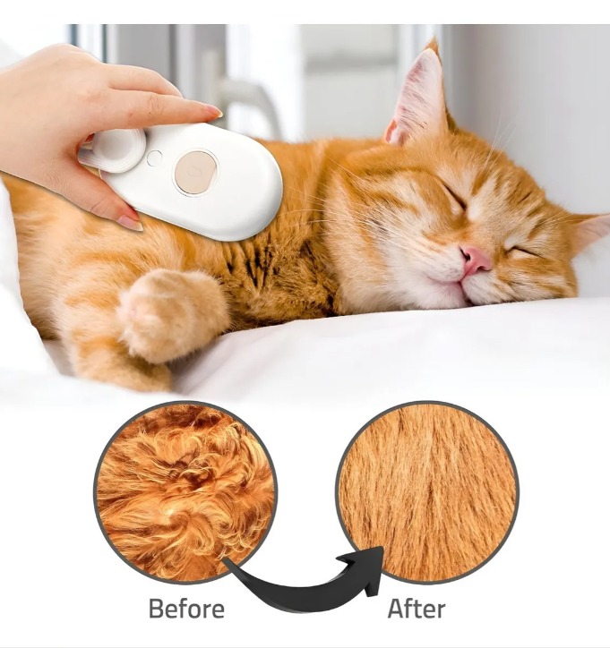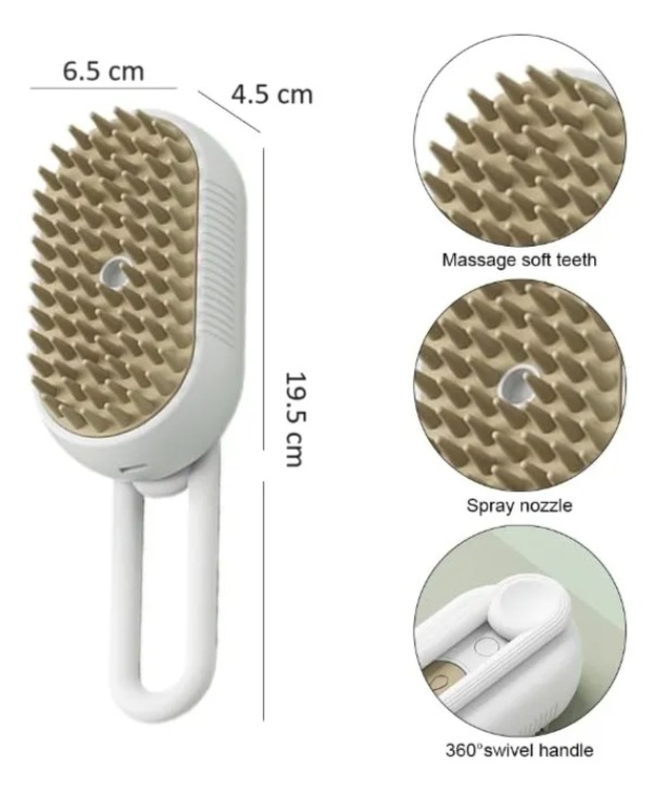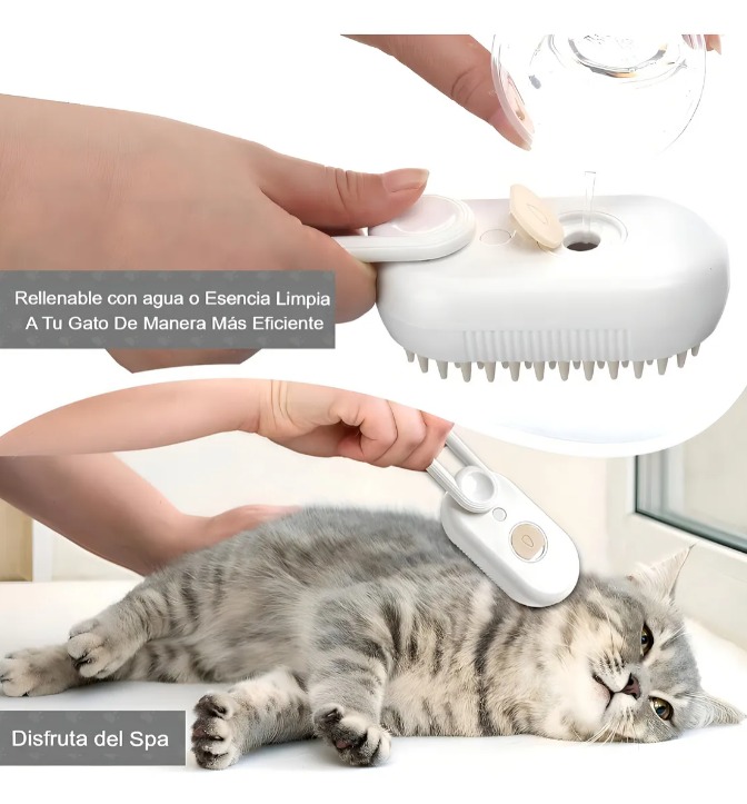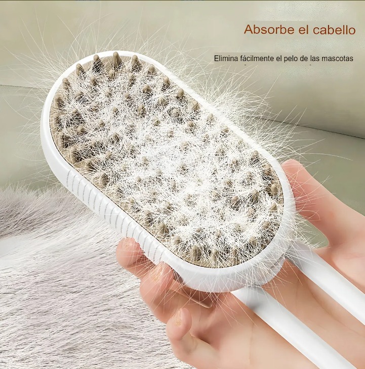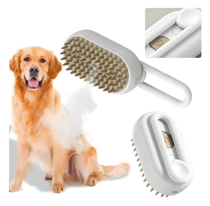 Cepillo Automático a Vapor para Mascotas 3 en 1 El cepillo a vapor automático para mascotas es una herramienta integral para el cuidado y aseo de tus amigos peludos. Este dispositivo combina cepillado, desenredado y vaporización en un solo producto, facilitando el proceso de cuidado. Su diseño ergonómico y seguro proporciona una experiencia cómoda para ti y tu mascota, dejando el pelaje suave, brillante y sin enredos.